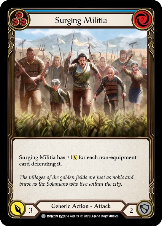 | Description: | Surging Militia has +1 [Power] for each non-equipment card defending it. |